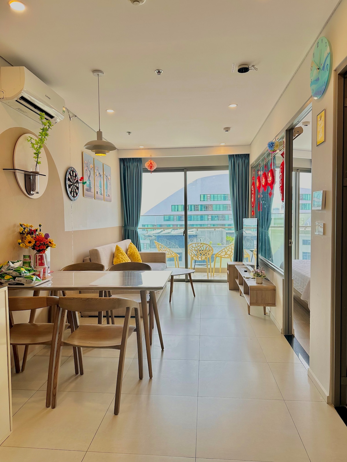 Минималистичная, полностью меблированная квартира с 1 спальней на 15-м этаже с захватывающим видом на море. Идеально для пар или семей с одним ребенком до 5 лет. Идеальное расположение рядом с пляжем Бэк (пляж Тху-Ван). Примерное время в пешей доступности от близлежащих удобств: - 2 минуты до пляжа через дорогу. - 5 минут до ближайшего круглосуточного магазина (GS25); - 8 минут до ближайшего супермаркета (Lotte Mart); Быстрые лифты. Бесплатный Netflix. У нас также есть один мотоцикл, доступный для аренды.