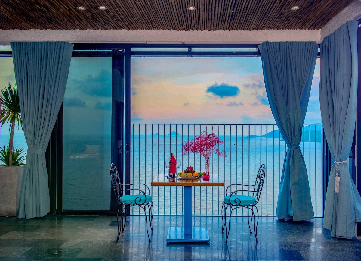 ✦. Откройте для себя спокойный отдых на побережье! Эта продуманно оформленная квартира с 2 спальнями сочетает в себе современную изысканность со спокойными голубыми тонами, откуда открывается захватывающий вид на океан и небо прямо из вашей гостиной. ✦ Жилье расположено в центре города. - в пешей доступности ~2-3 минуты. Главный пляж Ночной рынок Thap Tram Huong Торговый центр и магазин поблизости Кофейни и рестораны на пляже ✦Завтрак «шведский стол» и шезлонг на пляже включены