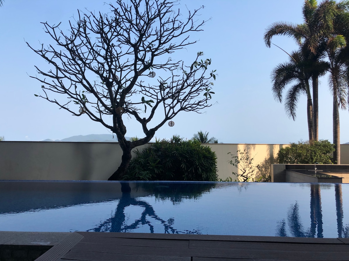 Это место считается роскошной, тихой, свежей и безопасной курортной виллой. Всего в 4 км от центра города, очень удобно добираться до туристических достопримечательностей. Вилла обращена к морю, поэтому в ней свежий утренний солнечный свет, а вид на синее море заставит вас почувствовать мирную энергию прибрежного города. Вилла полностью оборудована удобствами, а дом всегда полон деревьев, так что вы почувствуете себя как дома.