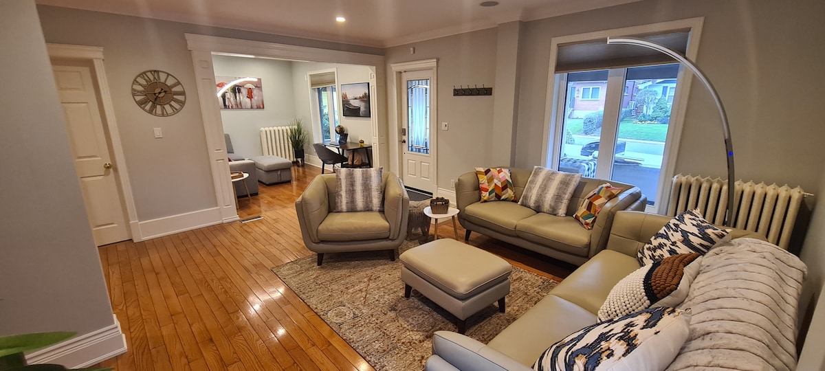 Приезжайте в наш прекрасный дом и исследуйте Ниагарский водопад. Наслаждайтесь отдыхом в нашем доме как в помещении, так и на открытом воздухе. В нашем доме есть гостиная/семья/гостиная с открытой планировкой и столовая с современными элементами. Офисный стол и стул для удаленной работы. Обнимитесь у камина или насладитесь гидромассажной ванной на открытом воздухе. 4 чистые и комфортабельные спальни и 2 ванные комнаты с туалетом. Смарт-телевизоры, полностью оборудованная кухня для шеф-повара и бесплатный Wi-Fi сделают ваше пребывание еще более приятным. Наслаждайтесь придомовой территорией и барбекю.