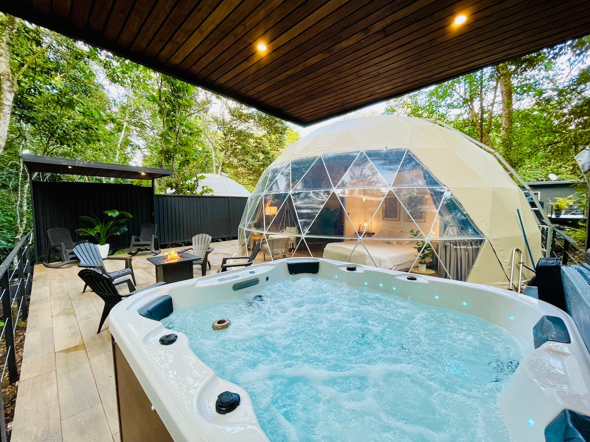 Современный глэмпинг-куполе в туманном лесу. Идеально для пар, любителей природы и удаленных работников. Собственная гидромассажная ванна, сетка для наблюдения за звездами и высокоскоростной Интернет. Идеальное сочетание природы и комфорта. В 15 минутах езды от заповедника Монтеверде.