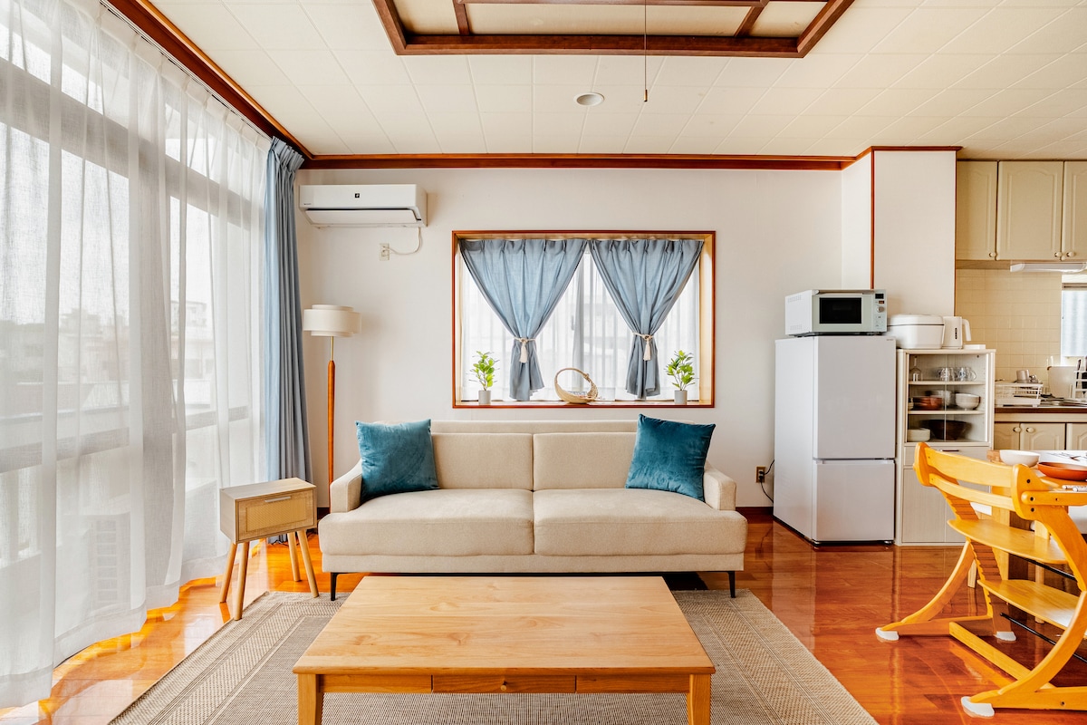 Отель является одним из старейших апартаментов, построенных в 1972 году.Здесь нет современных удобств, таких как новый отель, но чистая комната и милый интерьер Окинавы популярны среди молодых женщин.Комната в японском стиле обставлена традиционными татами. ☆Где Расположен в оживленном центре города, вы можете в полной мере насладиться городом Наха. Удобно пользоваться общественным транспортом, таким как монорельс/автобус/такси. В районе есть магазины, универмаги и популярные рестораны. ☆ваша комната Кухни нет, но есть микроволновая печь, электрический чайник, посуда и столовые приборы. Гостевая комната находится на 2-м этаже (только лестница) * Владелец живет на 3-м этаже. Размер 26 кв. м (280 кв. футов), как раз подходит для 1–2 взрослых. Постельное белье из органического хлопка и льна от «MUJI». В 2022 году мы отремонтировали туалет и душ. ☆Хозяин лично встретит и проводит гостей.Пожалуйста, напишите нам время заезда заранее. ☆В этом жилье нет паркинга.Сообщите мне заранее, если вы приедете на арендованном автомобиле.Рекомендуемые платные парковки в районе.