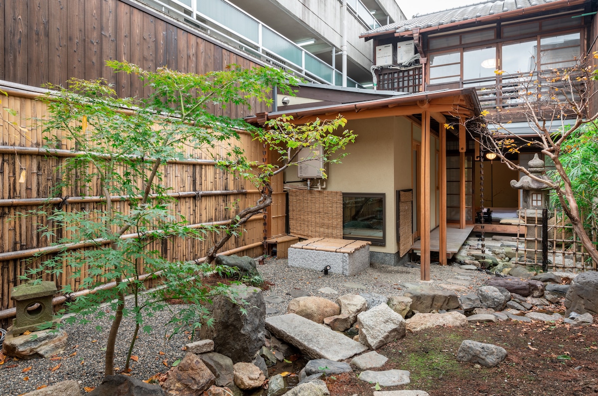 A Japanese traditional house CHANOMI located in the heart of Kyoto. Measuring a spacious 58㎡. CHANOMI was built in 1919, but spacious and comfortable. We have GOEMON-BURO(bath tub) next to shower room. Please try searching "GOEMON-BURO" !! Guests can enjoy your garden while enter the GOEMON-BURO. 2 minutes to Sijo-Dori(downtown) on foot, guests can enjoy shopping and access to public transportations soon.