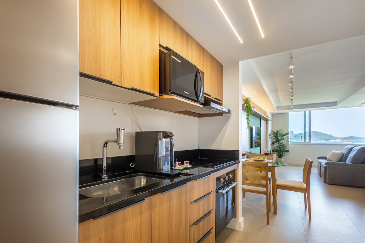 Лофт — это большое пространство с чистым декором. Обеспечивает комфорт и удобство для гостей. Wi-Fi до 500 Мбит/с. В кондоминиуме есть бассейн с подогревом, фитнес-центр, прачечная, 1 парковочное место. Отличное расположение, в 40 метрах от пляжа Икараи и в 1,8 км от MAC. Рядом с ресторанами (Tenore и La Mole), недалеко от супермаркетов, пекарни и аптеки. На углу улицы есть стоянка такси. Есть автобусная остановка, где можно сесть на автобус до паромов, торгового центра Plaza, UFF, Копакабаны, Галеана и т. д.
