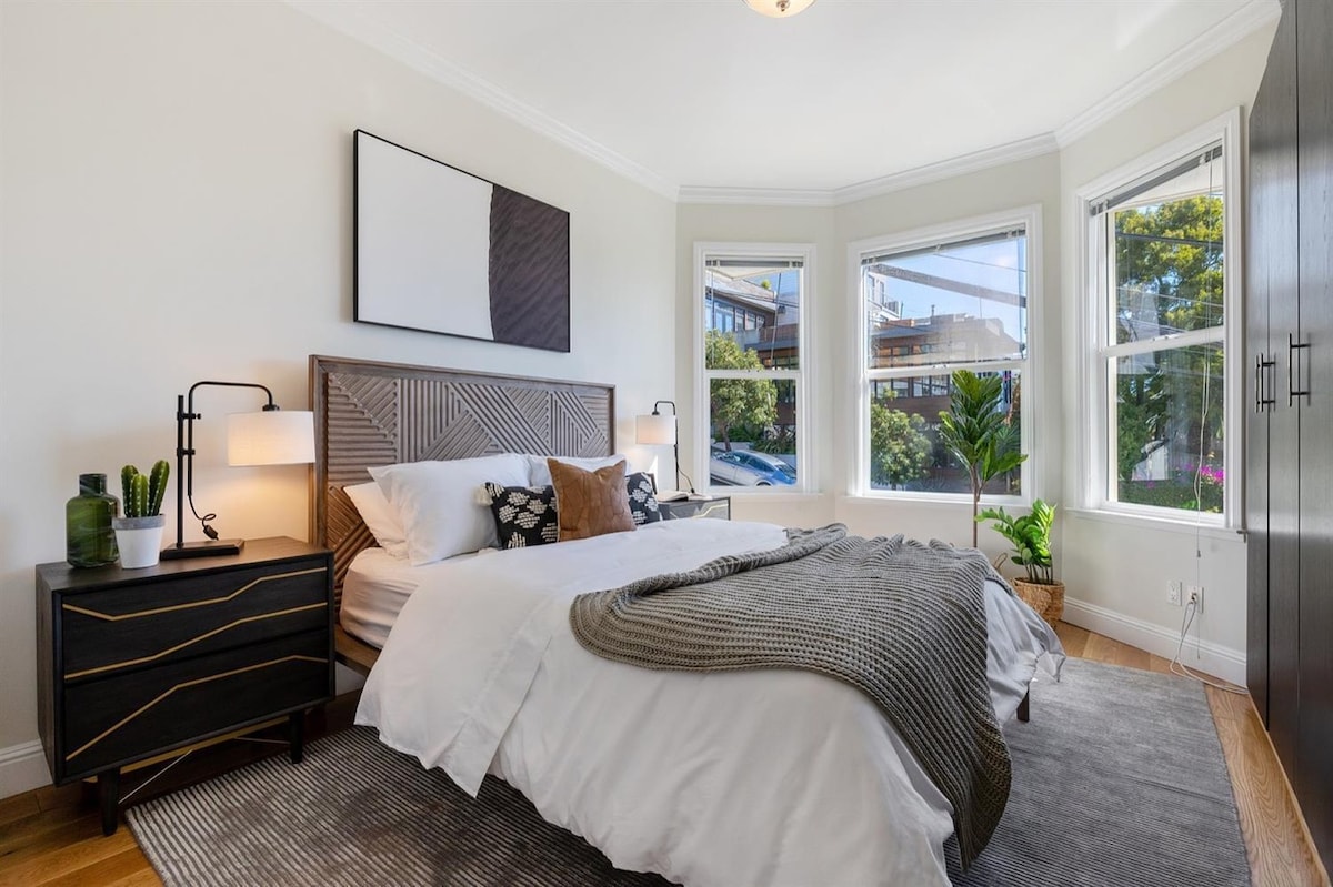 Welcome to our flat with a stunning Twin Peak view! You will enjoy a light filled airy open floor plan and patio, virtually your own apt Cook meals in a full kitchen, watch a beautiful sunset A fast Wi-Fi, 2 desks in separate rooms for a working couple Experience a restful night on a top-rated queen mattress with dust mite protected bedding This sunny hillside hideaway is centrally located to public transportation, medical and financial center, cafes and restaurants.
