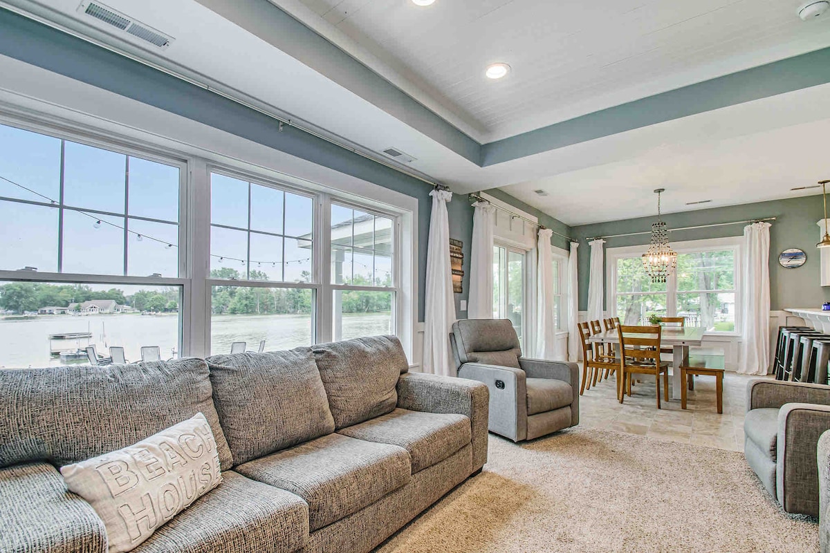 Добро пожаловать на озеро! Откройте для себя этот совершенно новый, полностью отремонтированный роскошный дом на озере, который может похвастаться 65-футовым фасадом озера, вмещает до 15 гостей, а интерьер был полностью переделан, чтобы встретить вас в потрясающей и спокойной гавани на озере. Насладитесь утренним кофе на красивой террасе, а затем отправляйтесь на просторный пляж, чтобы расслабиться, прыгнуть в озеро, покататься на каяках, водном велосипеде и удобной лодке (для небольших лодок!) прямо с нашей подъездной дорожки!