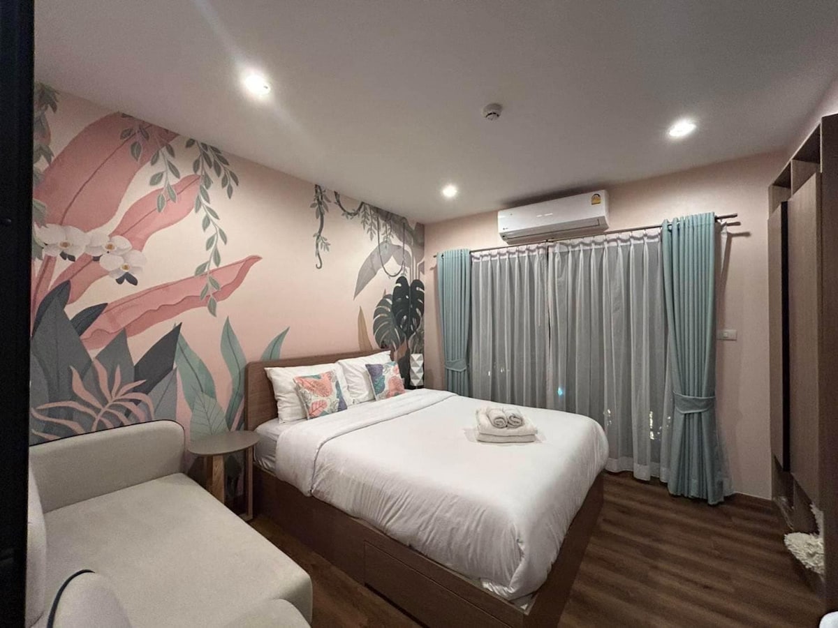 Уютный люкс с 1 спальней и видом на бассейн (34 кв. м) с балконом на высоком этаже и собственной стиральной машиной Всего в 250 метрах от пляжа. Смарт-телевизор и Wi-Fi (Netflix), бесплатная капсульная кофемашина и туалетные принадлежности. В нескольких🌴 шагах от ночных рынков Cicada и Tamarind (200 м), 7-Eleven (100 м) и в нескольких минутах езды от торговых центров, больницы и аэропорта Хуахин (20 минут). Стильный, комфортный и романтический отдых у моря ждет вас. 💌 🚗 Дополнительное удобство: трансфер из аэропорта предоставляется по запросу.