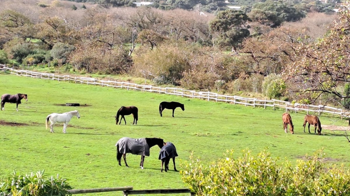 Please note that our neighbours are currently building so there may be noise disturbance. Price has been adjusted accordingly! Completely separate, private suite with ample parking on a 5-acre smallholding in Noordhoek. Original wood flooring, queen XL bed with Egyptian-cotton bedlinen, smart TV, fridge, microwave, gas cooker and automatic coffee machine, desk and wifi plus a private, sunny courtyard with firepit. The sizeable en-suite bathroom has a cast-iron bath and large shower.