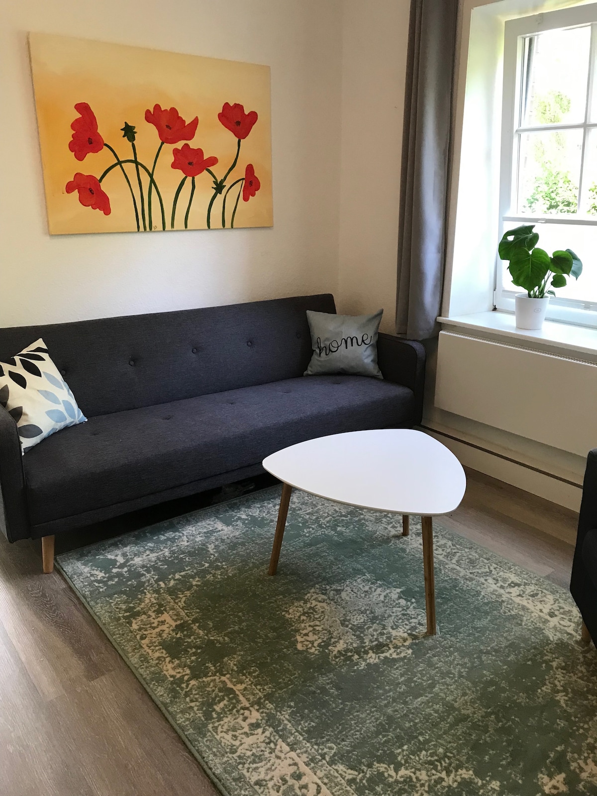 Светлая двухкомнатная квартира в деревенском стиле на втором этаже с белой мебелью, настоящим деревянным паркетом, полностью оборудованной кухней, ванной комнатой и спальней. В центре Веннингштедта в непосредственной близости от деревенского пруда, много магазинов (пекарни внизу в доме) и отличные рестораны. Гош и пляж в пешей доступности! (5-10 минут). С балкона с шезлонгом открывается вид на маяк Кампенер. Автобусная остановка находится прямо за дверью. Прибытие с 16:00.