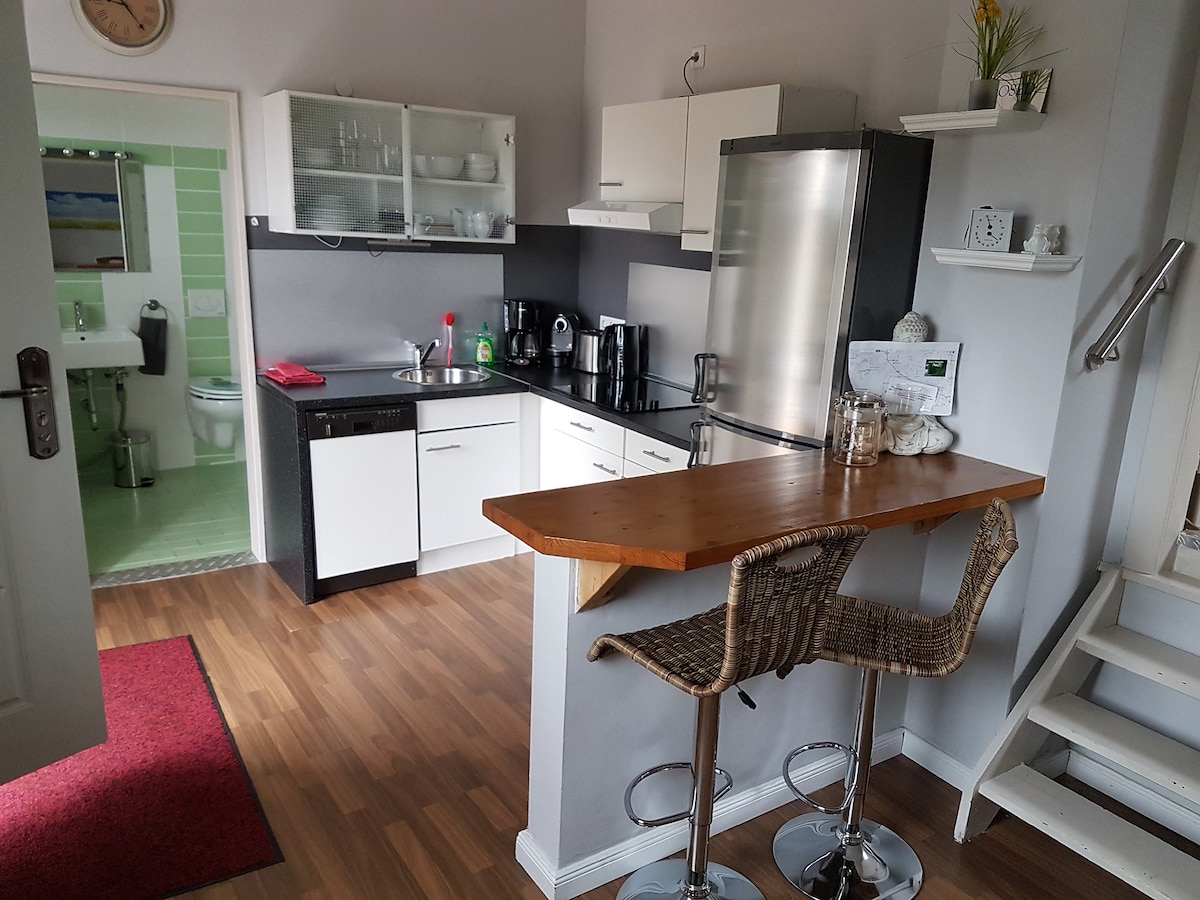 We rent a cozy, small, approx. 40 square meter apartment with a view of the countryside, which you can enjoy while having breakfast from the lounge seating area on the wooden terrace from the first floor. The apartment is perfect for two people, but can also be used for a short time with 4 people. The 186 bus stops right in front of our door and with the S-Bahn, which is about 1500m away, you are in the center of Hamburg. More information at hvv.de Cars can be parked right in front of the door.