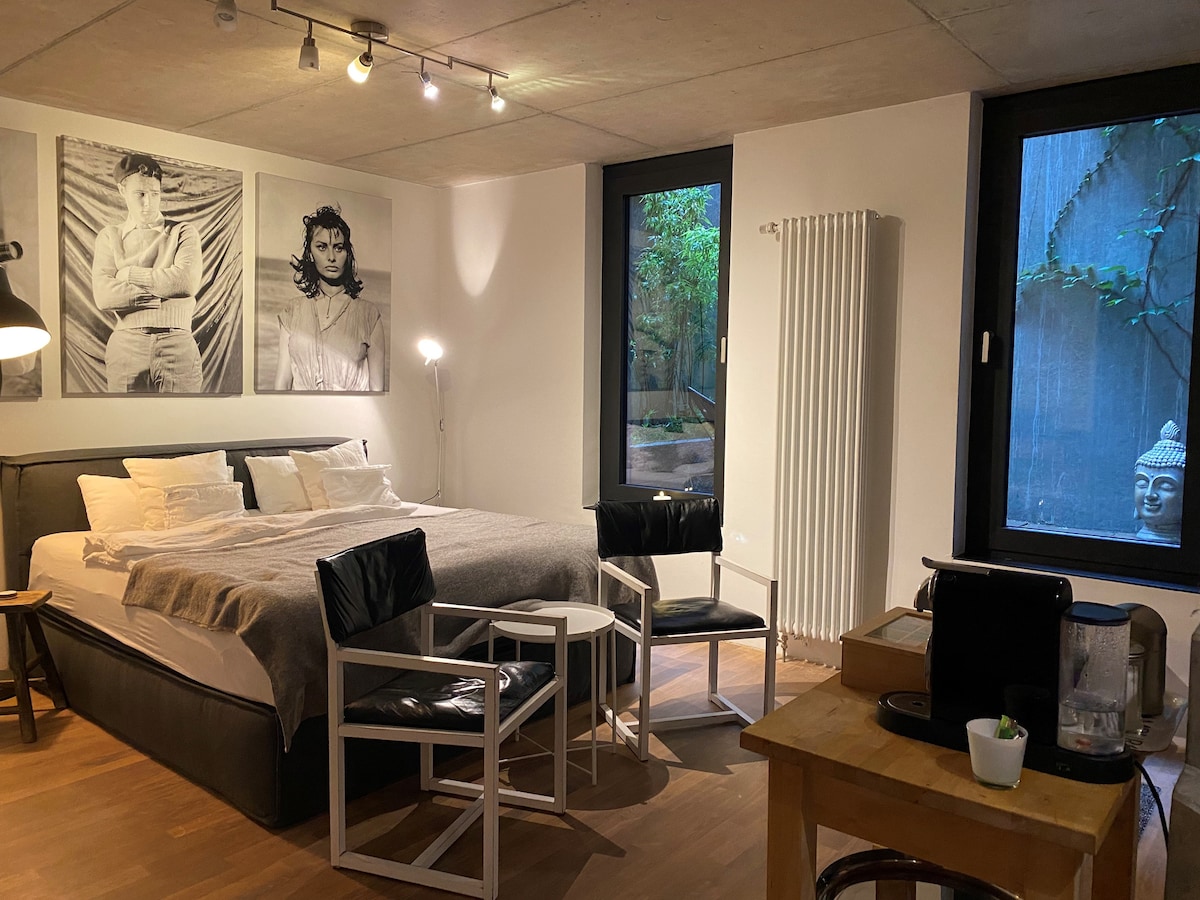 Hochwertiges, nagel-neues Design-Loft im EG eines neuen Stadthauses mitten im Zentrum Hamburgs (nah zu Alster, Innenstadt, Schanze, Eimsbüttel...) für anspruchsvolle Hamburg-Besucher mit Geschmack. Offener loftiger Grundriss mit diversen chill Gelegenheiten, voll-ausgestattete, offene Küche, überdachte Terrasse und grüner Innenhof, hochwertiges Bad mit separater Dusche und WC. Separater Eingang. Für alle, die mittendrin und dennoch ruhig und grün wohnen wollen. (Rechnung/ MwSt ausweisbar).