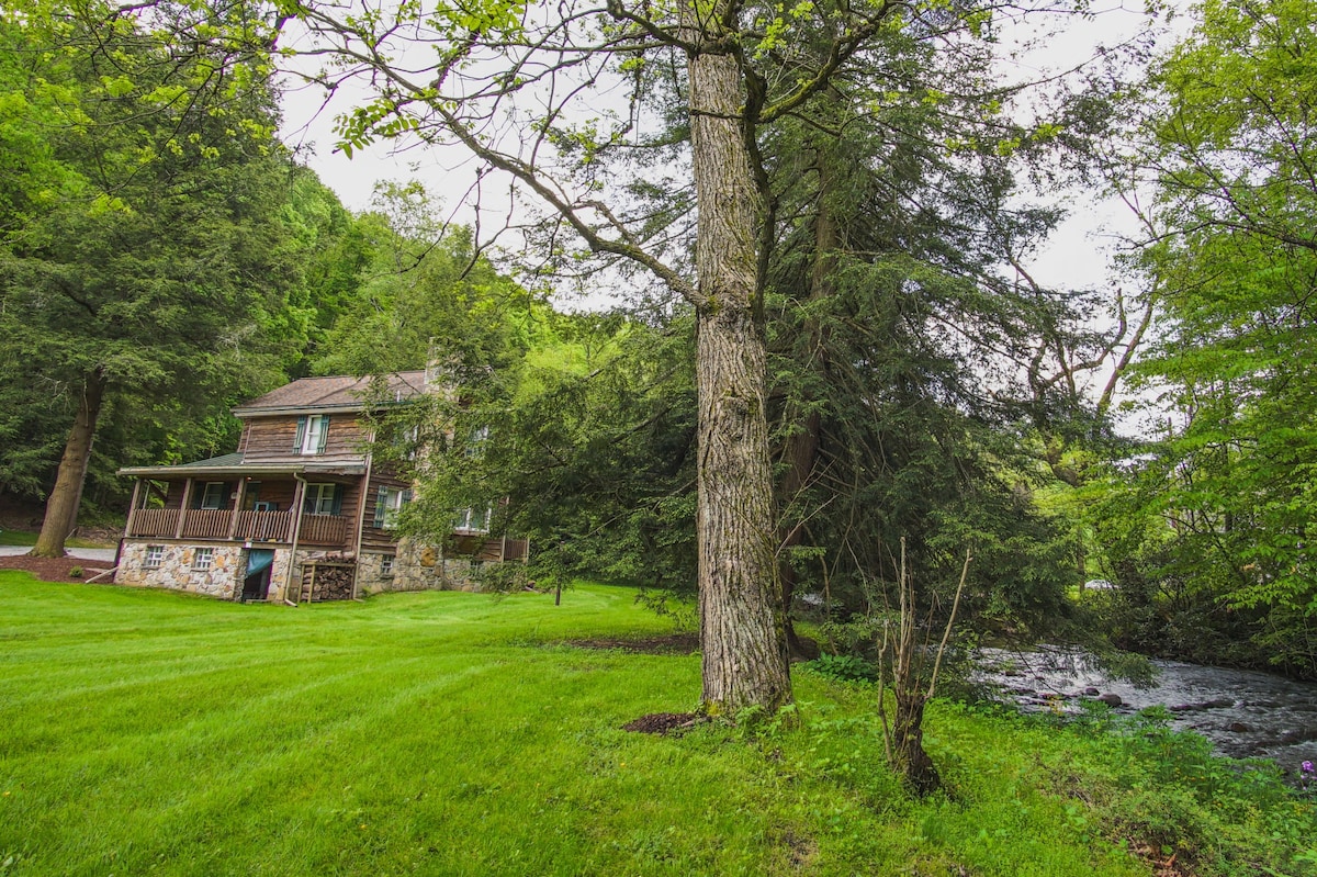 This cozy log cabin is conveniently located near Seven Springs, Hidden Valley, Ohiopyle State Park & Fallingwater. The log cabin is situated on a quiet lane along Poplar Run. Features: 3 bedrooms, 2 bathrooms, spacious living room, large kitchen, deck, outdoor seating, fire pit, pond. Guest house available April - Oct for additional fee. Inquire if interested. It features a queen bed, kitchenette & 1 bathroom. We offer Netflix & WiFi | NO Cable Dogs allowed for a $75.00 fee