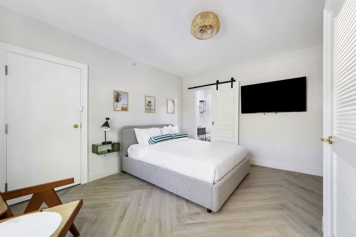 Откройте для себя уединенное очарование Норт-Бич в Майами-Бич, где уютная частная квартира находится всего в квартале от песчаного побережья. В этом уединенном месте есть ванная комната, два пляжных стула с зонтиком, переносные кулеры и причудливый обеденный стол. Идеально подходит для двух гостей. К услугам гостей двуспальная кровать размера Queen size, Wi-Fi и телевизор со Smart TV. Найти уличную парковку по вечерам и в выходные дни может быть трудно. Полностью оборудованная кухня не предоставляется, но для удобства предоставляются микроволновая печь и холодильник.
