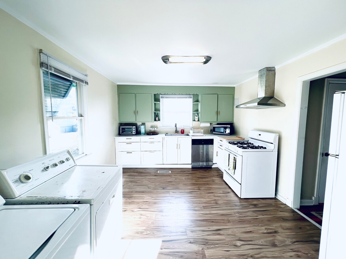 МАКС. 5 ЧЕЛ. Не стесняйтесь задавать любые вопросы/проблемы, чтобы облегчить ваше пребывание. Наша цель — ваше спокойствие! Самостоятельное заселение с кодом дверного замка. Раннее заселение и позднее выселение возможны, если это возможно. 2 спальни с 2 двуспальными кроватями, гостиная с диваном-кроватью, полностью оборудованная кухня, ванная комната, стиральная и сушильная машины. (Предоставляются капсулы с моющим средством и салфетки для сушильной машины) 3 телевизора Smart TV с бесплатным DirectTV. Бесплатная парковка для 3 автомобилей. Кофе Keurig KCup и свежие яйца в холодильнике бесплатно в качестве благодарности за то, что вы наш гость.