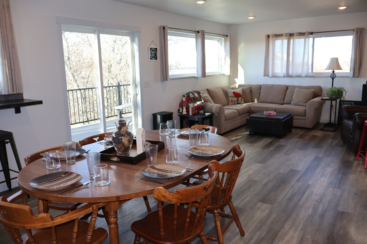 Это стильное загородное жилье находится недалеко от очаровательного шоссе с скульптурами высотой от 70 до 80 футов вдоль дороги. Когда вы выйдете на съезд I-94 Gladstone, вы увидите скульптуру «Птицы в полете» высотой 80футов. В конце вы будете в очаровательном замке. Мы находимся в 40 милях от Медоры и национального парка Рузвельт, это обязательное место для посещения. У вас есть отдельный вход и патио. Бар для барбекю с печью для пиццы на верхней террасе. Уличная костровая яма и (3) каяки для сердечной реки внизу.