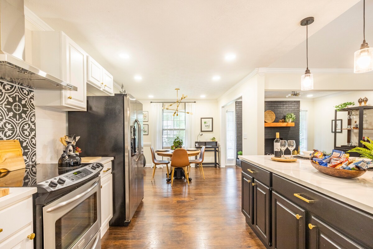 Откройте для себя Голди-Хаус в Атланте в Стоун-Маунтин, штат Джорджия. Расположена в центре города - в 20 минутах от аэропорта и центра города. Расслабьтесь у камина, развлекайте и принимайте гостей на нашей прекрасной современной кухне с 10-футовым островом. Отдыхайте на матрасах Casper. Насладитесь ужином на открытом воздухе, обжарьте зефир в костровище, отдохните в частном огороженном открытом пространстве. Стильные спальни с 2 кроватями размера King size и 1 кроватью размера Queen size, семьи с домашними животными приветствуются. Пусть ваш визит в Атланту станет незабываемым в Goldie House!