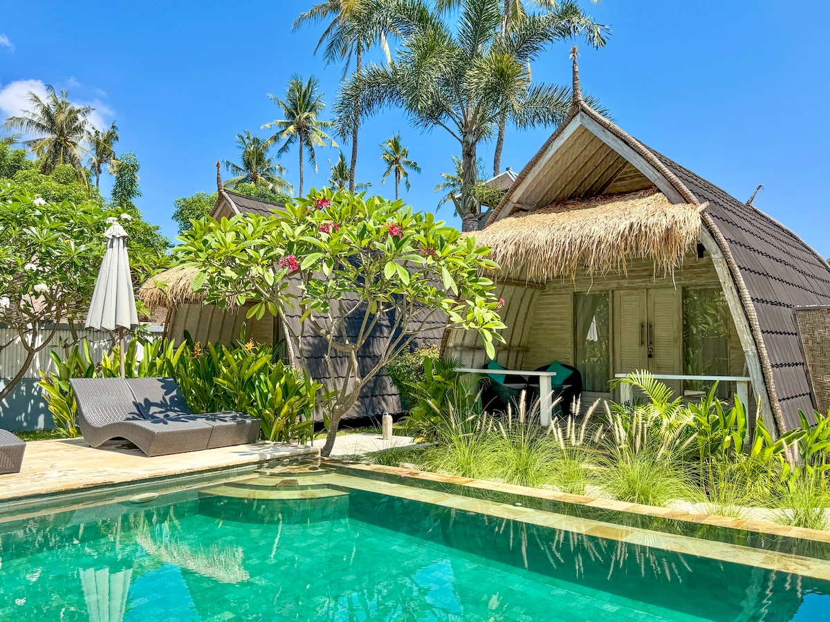 Отдельные 2 бунгало с завтраком и бассейном на Гили-Травангане