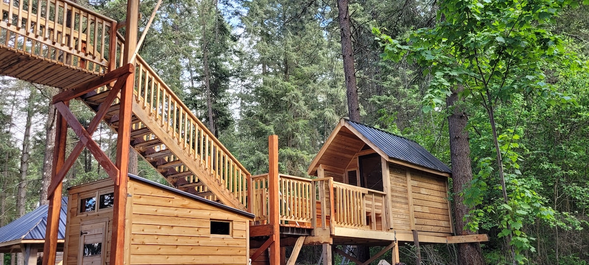 Слушайте звуки природы, остановившись в этом уникальном жилье. Построенный на высоте 16 футов над землей между двумя большими пивными деревьями Дугласа и в комплекте с большой деревенской дверью. Завораживающий вид на густой лес, ведущий к лестнице и подвесному мосту, которые ведут к главной двери. Насладитесь закатом на главном этаже с помощью защитной сетки и услышите свистящий ветер, наслаждаясь ужином на кухне/в зоне патио на открытом воздухе с вашим любимым вином.