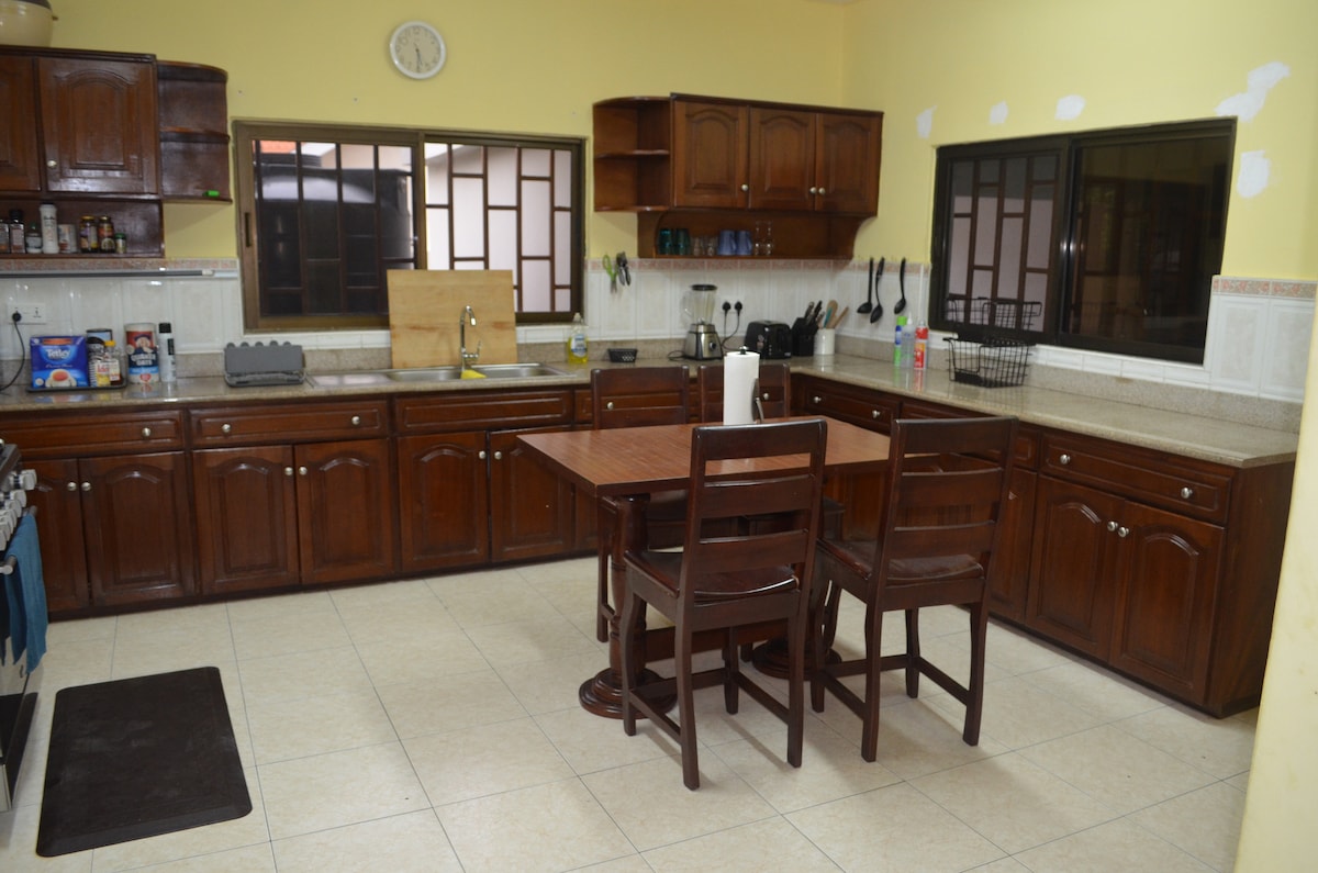 Жилье суперхозяина Реджи: 🛫 БЕСПЛАТНЫЙ трансфер из аэропорта и обратно 🚗 БЕСПЛАТНЫЙ автомобиль с водителем (топливо за ваш счет; дополнительная плата за поездки за пределы Аккры) 🍳 БЕСПЛАТНЫЙ повар (продукты не включены) 🥞 БЕСПЛАТНЫЙ завтрак (чай, кофе, блинчики, яйца, вафли, овсянка, каша). 🕛 БЕСПЛАТНЫЙ поздний выезд 🏡 Закрытое сообщество, круглосуточная охрана 🛌 2 спальни, 1,5 ванные комнаты с кондиционером. 📶 БЕСПЛАТНЫЙ Wi-Fi через спутник Starlink, Netflix, IPTV 🔌 Универсальные электрические розетки 🏋️ Тренажерный зал и бассейн (за дополнительную плату) Идеально подходит для беззаботного проживания в Аккре