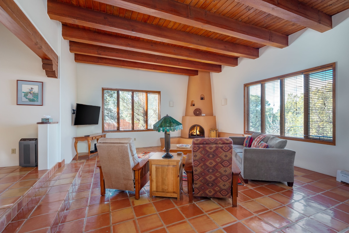 Очаровательный, просторный, светлый и чистый частный двухуровневый домик в красивой лесной местности, в 15 минутах езды от Санта-Фе на историческом шоссе 66. Пешеходные тропы, освещенная обеденная зона в беседке, прекрасные сады, куры, батут и костровище - все это часть гостеприимной целительной атмосферы на пяти акрах земли. Отлично подходит для особенного отдыха, потрясающего отдыха или запуска в любом из замечательных мест на севере Нью-Мексико. Дети приветствуются! Лицензия:# STRO-40055 Permit# 23-6109
