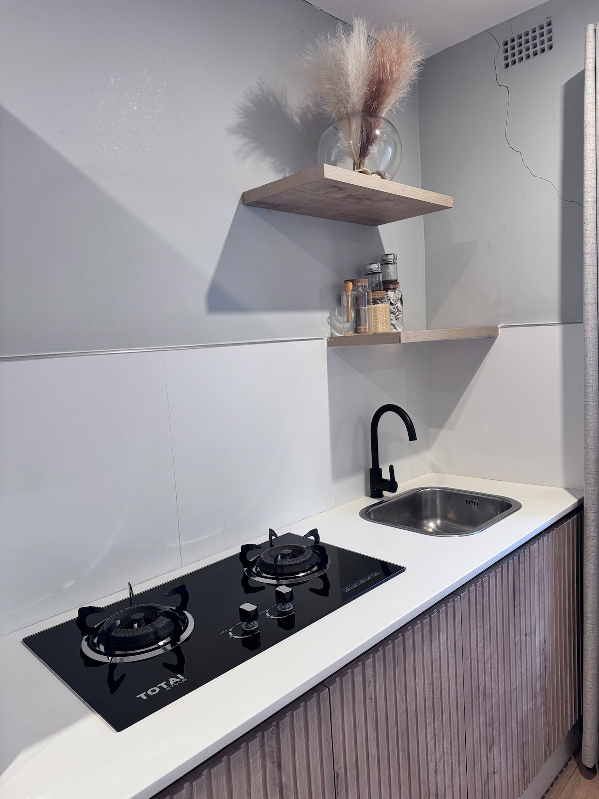 Побалуйте себя изысканным спокойствием в этой красивой квартире с одной спальней. Приготовьте что-нибудь поесть на уютной мини-кухне с плитой и микроволновой печью. Или расслабьтесь в уютной гостиной с 55-дюймовым телевизором Smart TV, Netflix и DStv, и пользуйтесь быстрым безлимитным Wi-Fi, потягивая что-нибудь холодное из холодильника. Или вы можете выйти на улицу и погрузиться в безмятежный сад. Насладитесь спокойным отдыхом в этом тихом и стильном доме вдали от дома с полной солнечной батареей.