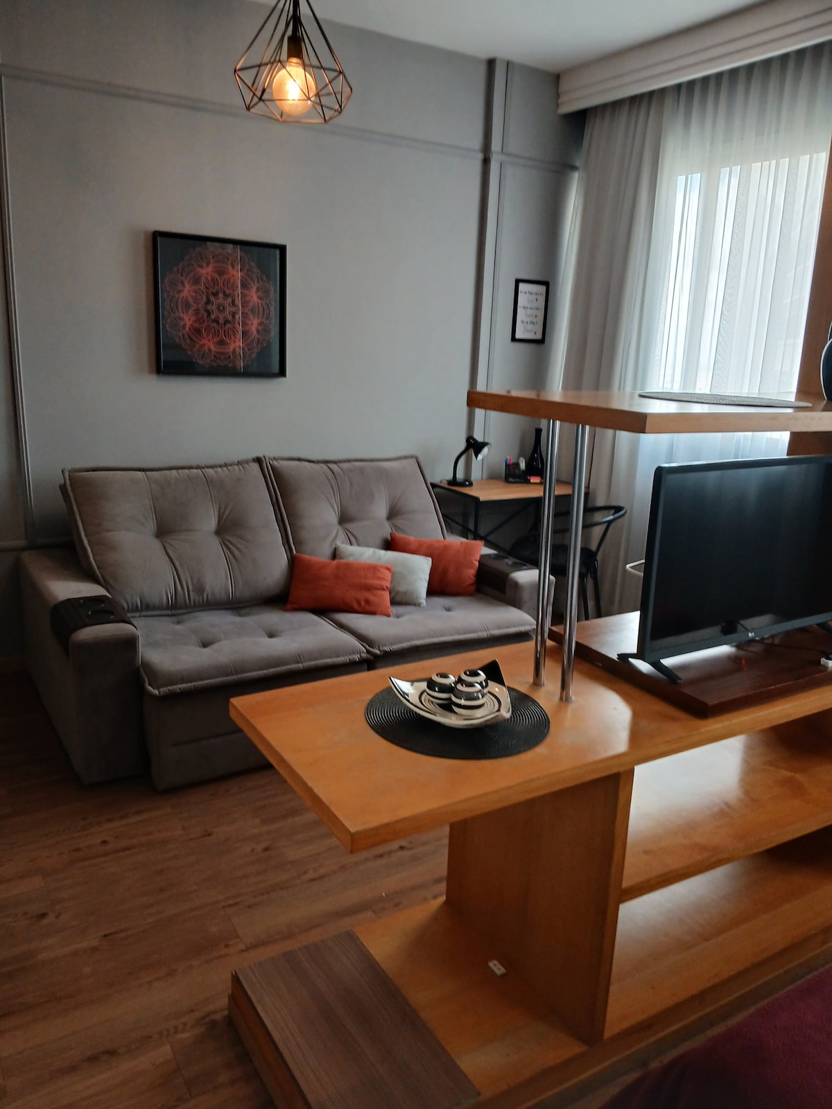 Квартира 50 м², современная и укомплектованная. Гостиная и встроенная кухня с плитой, холодильником, мультипечью, микроволновой печью. Балкон с видом. Уютная комната, ванная с отличным душем. Wi-Fi, Smart TV, кондиционер, рабочее место. Гараж с услугами парковщика включены! Непревзойденное расположение: рядом с Praça da Savassi, Shopping Patio Savassi и Praça da Liberdade. Тренажерный зал, бассейн, сауна и круглосуточная стойка регистрации. Завтрак (оплачивается отдельно). Идеально подходит для работы или отдыха. Viva BH с комфортом и удобством!