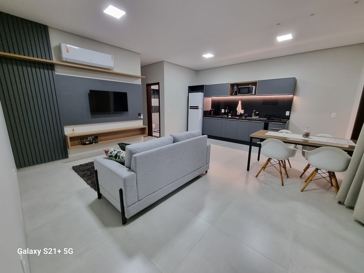 Комфортабельная, полностью оборудованная квартира в хорошем районе, идеально подходит для семей и деловых путешественников. До главных улиц города и шоссе BR-163 легко добраться. Номера с климат-контролем, удобная кровать, уютная гостиная и оборудованная кухня, очиститель воды. К услугам гостей телевизор со Smart TV, быстрый Wi-Fi, стиральная машина, постельное белье и полотенца. Здание с лифтом, крытая парковка у входа. Рядом с супермаркетами, аптеками, пекарнями и лучшими гастрономическими заведениями, до которых можно дойти пешком. Забронируйте и чувствуйте себя как дома.