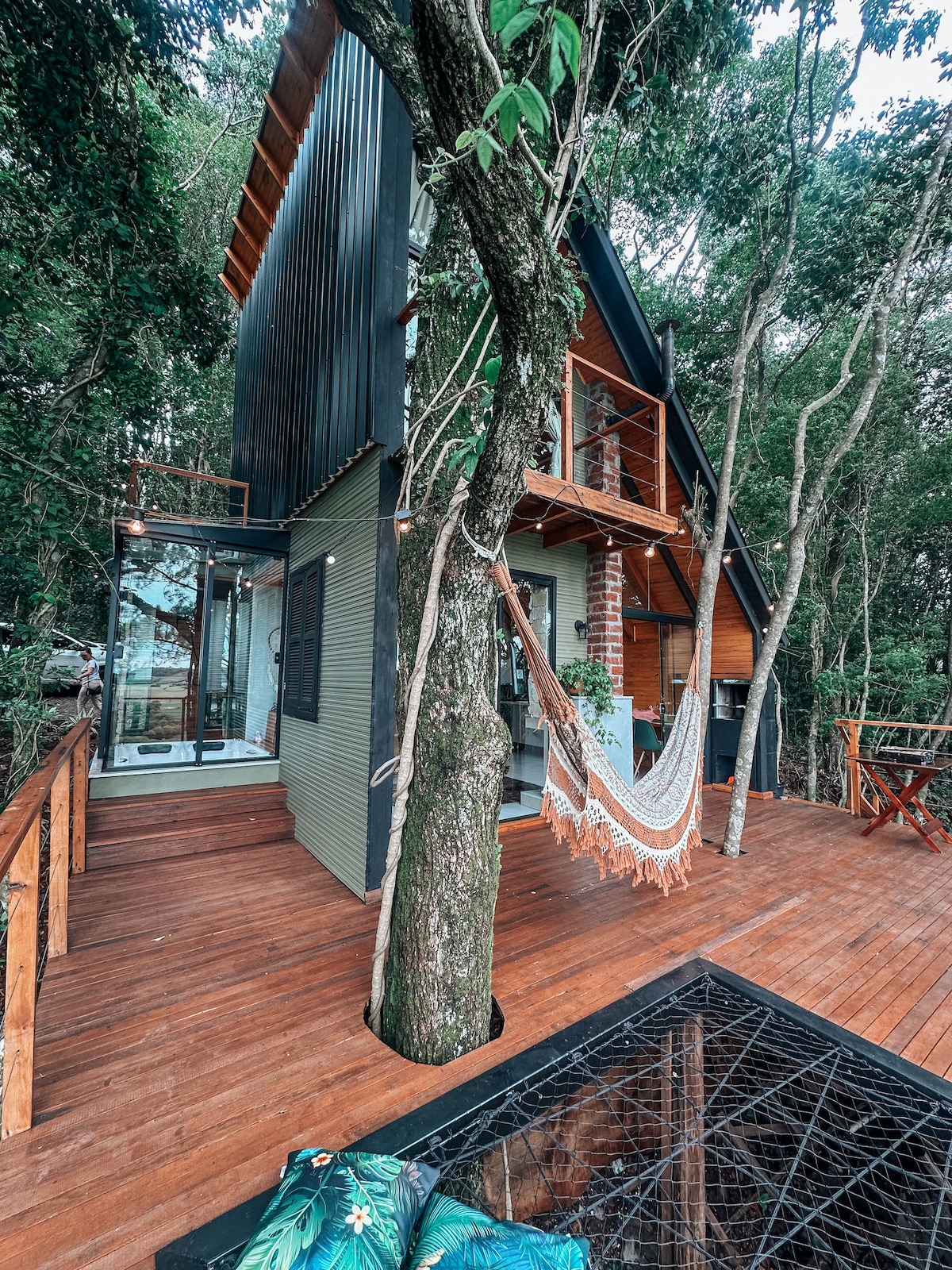 Cabana exclusiva em meio à mata, com vista incrível para o vale e pôr do sol inesquecível. O grande diferencial é a banheira de hidromassagem com vista panorâmica, cercada por vidro, em um ambiente totalmente privativo. Conta com deck amplo, churrasqueira e rede suspensa. A cabana é 100% climatizada, possui cozinha com itens básicos e quarto no andar superior com vista encantadora. Ideal para quem busca conforto, natureza e total privacidade.