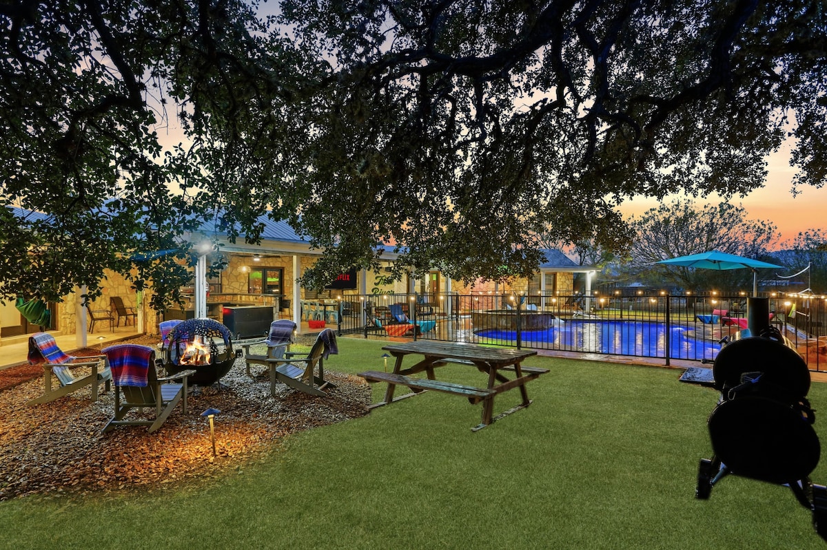 Редкий большой и оригинальный частный дом на ранчо 1920-х годов на 7 акрах с прямым ЧАСТНЫМ доступом к реке Медина В БАНДЕРЕ! В 5 минутах от баров/ресторанов/магазинов в центре города! Очень подходит для собак, за отдельную плату. Сертифицированный выбор гостей! Прочитайте наши более 100 5-ЗВЕЗДНЫХ ОТЗЫВОВ! Идеально подходит для больших или маленьких групп. Базовая цена главного дома = 8 ГОСТИ/3 СПАЛЬНИ/3 ВАННЫЕ КОМНАТЫ. За дополнительную плату доступны еще 6 больших комнат/ванных комнат. Максимальная вместимость — 25 человек (НЕ ПО БАЗОВОЙ ЦЕНЕ). Это редкая возможность!