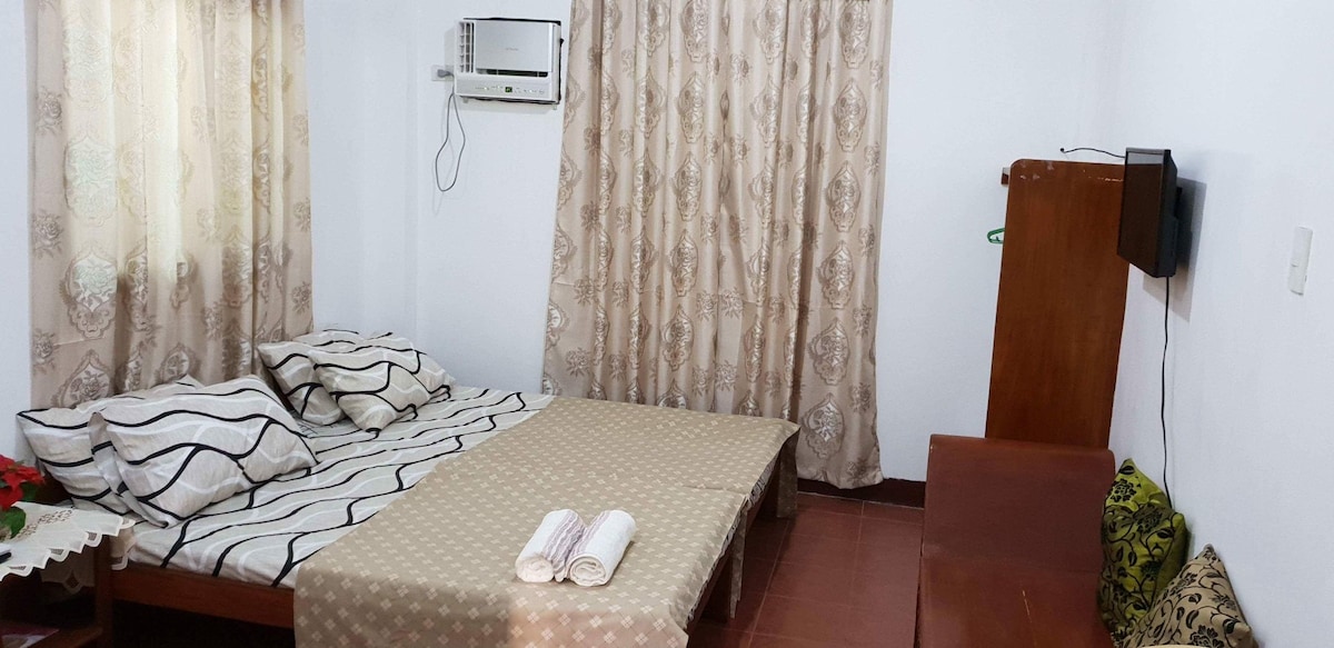 Очарование этой уютной квартиры на втором этаже. С 2 комфортабельными спальнями, каждая с собственным кондиционером и расслабляющей гостиной с кондиционером, комфорт гарантирован. На хорошо оборудованной кухне есть газовая плита, диспенсер для воды, кастрюли и посуда. Вы найдете горячий/холодный душ для удобства. Напротив пляжного курорта Mabby 's Beach Resort вы в нескольких шагах от пляжа. Наблюдайте за потрясающими закатами на закате Илоило и создает неизгладимые воспоминания о вашем визите.
