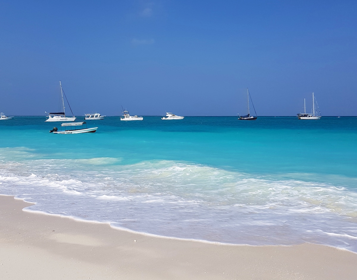 Exclusive Beach Front design Apartment on the breathtaking island of Zanzibar, located on the pristine white sand beach of Kiwengwa with Direct beach access. The apartment features a harmonious blend of African and Italian décor. 200 sqm Private Patio offering a unique view of turquoise ocean and white sandbank Your stay includes: a daily freshly prepared breakfast, daily housekeeping service, Private Concierge , Private Chef, a la carte menu, 35 KWA new generator, AC & unlimited fast Wi-Fi
