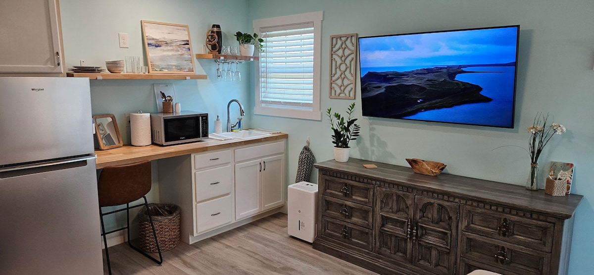 Современная и уютная студия в тихом районе, где можно остановиться с питомцами. Пять минут ходьбы от нескольких ресторанов и три квартала (10 минут ходьбы) от прямого доступа к пляжу. Наслаждайтесь пением птиц и океанским бризом, готовя еду на гриле или расслабляясь на крытой бризе. Возьмите с собой дрова и разведите расслабляющий огонь в нашем прекрасном костровище! В этом стильном месте есть мини-кухня, ванная с туалетом, шкаф, удивительно удобная кровать и диван! Идеальное место для пары или нескольких друзей!