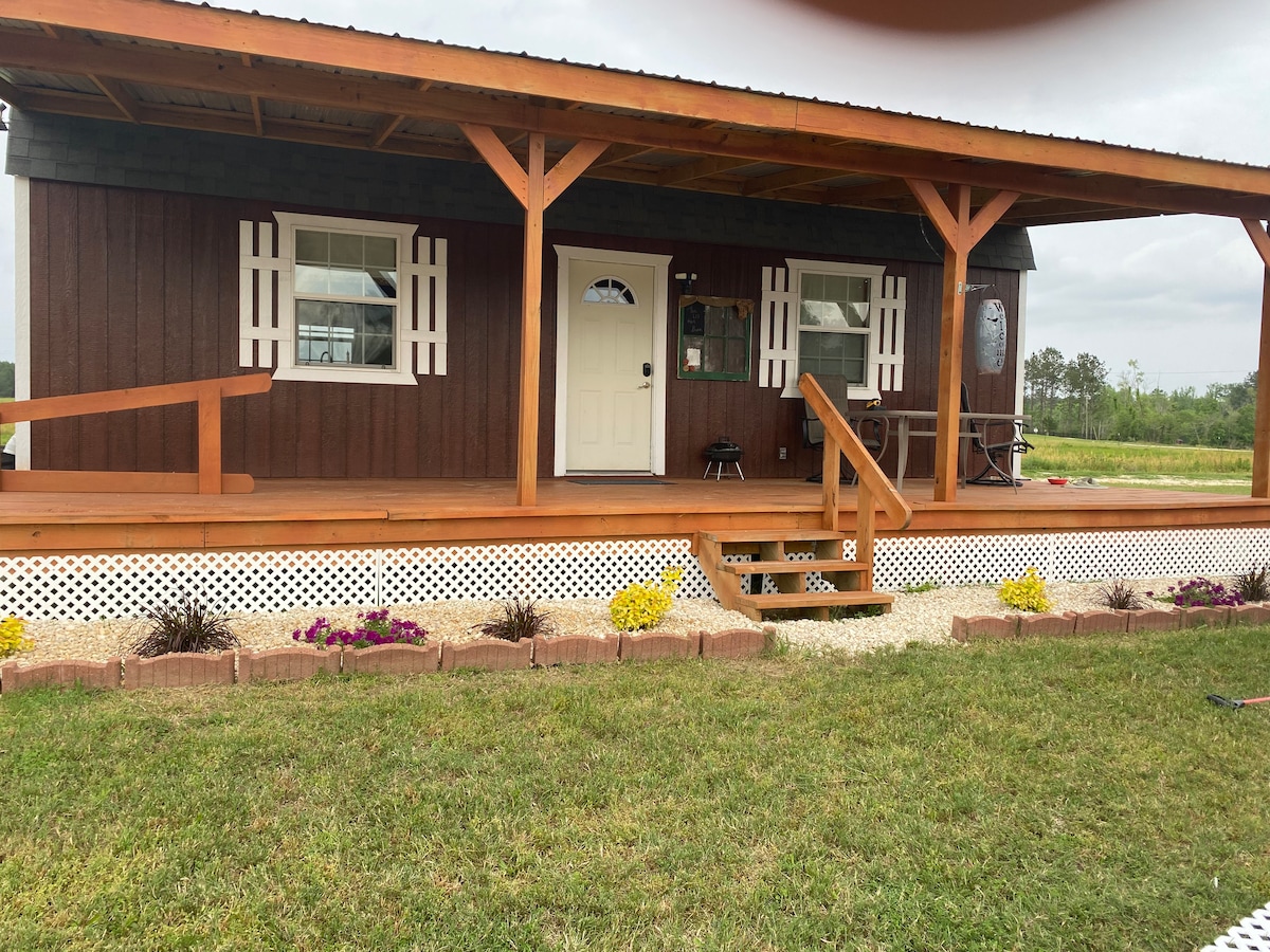 Our cozy cabin sits in the heart of Cajun country, about 30 minutes outside of Lafayette. It's a great place to spend time relaxing in the quiet serenity of South Louisiana, or enjoy spending a night or more traveling through, it is located just 8 miles north of Interstate 10. We do not allow pets. The Cabin is all wood inside and has the great cabin smell the minute you open the door. It was built in 2014 by Amish builders in Pennsylvania and transported down by a truck.