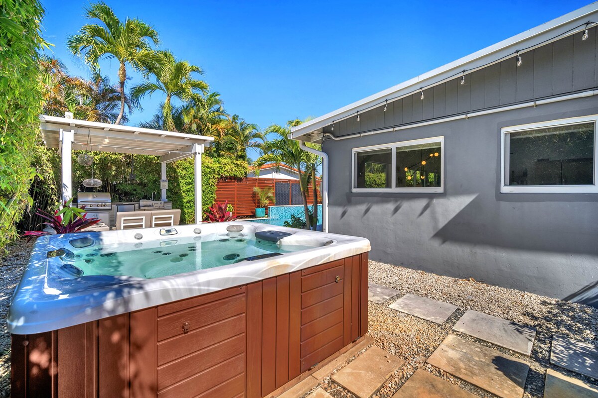 Этот недавно отремонтированный дом был тщательно спроектирован с учетом желаний отдыхающего. Этот дом расположен к северу от центра города и имеет огромный задний двор в курортном стиле. Во дворе есть собственный бассейн, огромная открытая терраса и обеденная зона, загорелая сетка, беседка с телевизором на открытом воздухе и даже холодильник на открытом воздухе для хранения напитков. Это жилье расположено всего в 15 минутах езды от Лас-Олас, пляжа и Уилтон-драйв. Готовы отдохнуть в оазисе на заднем дворе? Бронируйте у нас сегодня!