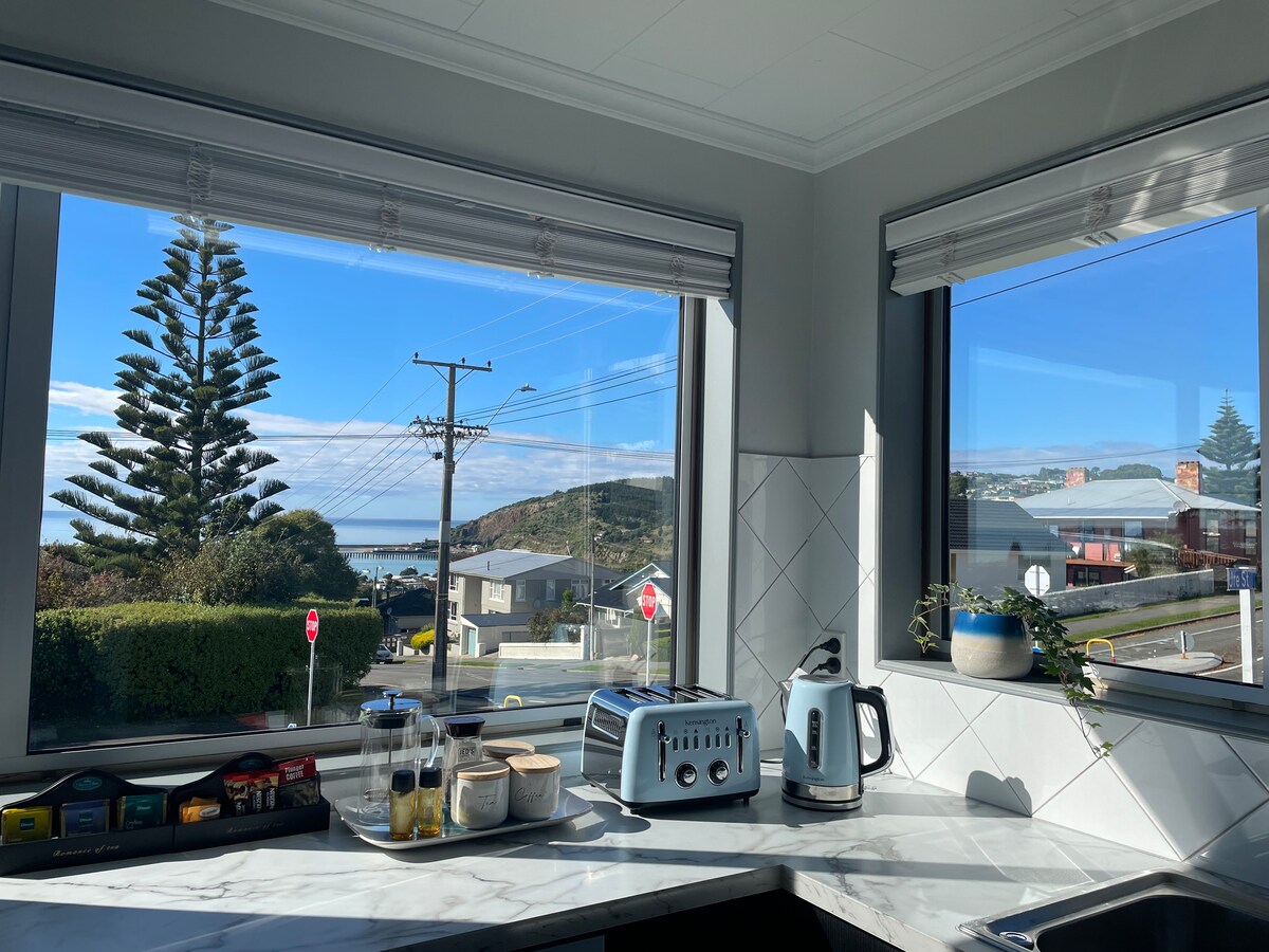Это целая квартира с видом на океан. Он уютный и тихий, всего в 5 минутах от Оамару, но расположен в красивой сельской местности. Новая кухня, уютная гостиная и частный двор с барбекю и отдельным входом. Чай, кофе, молоко и основные принадлежности в кладовой, домашний хлеб и образец нашего собственного меда . Предоставляются сухие завтраки. Вам понравится. Приятный сад и виды сверху все это.... в то время как удобно в городе.