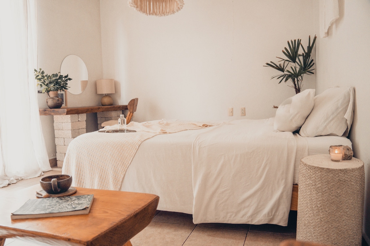 Комфортабельная комната на 2 человек в одном из самых красивых старых районов Оахаки. Расположена в красивом доме с 8 спальнями, каждая с собственной ванной. Когда вы остановитесь в этой комнате, вы будете выходить на первый и просторный внутренний дворик дома; вы можете насладиться вкусными блюдами по меню за дополнительную плату. Мы находимся всего в 3 кварталах от церкви Санто-Доминго и в 2 кварталах от туристической пешеходной зоны. Прогуливаясь по главной площади, вы найдете бесчисленное количество достопримечательностей.