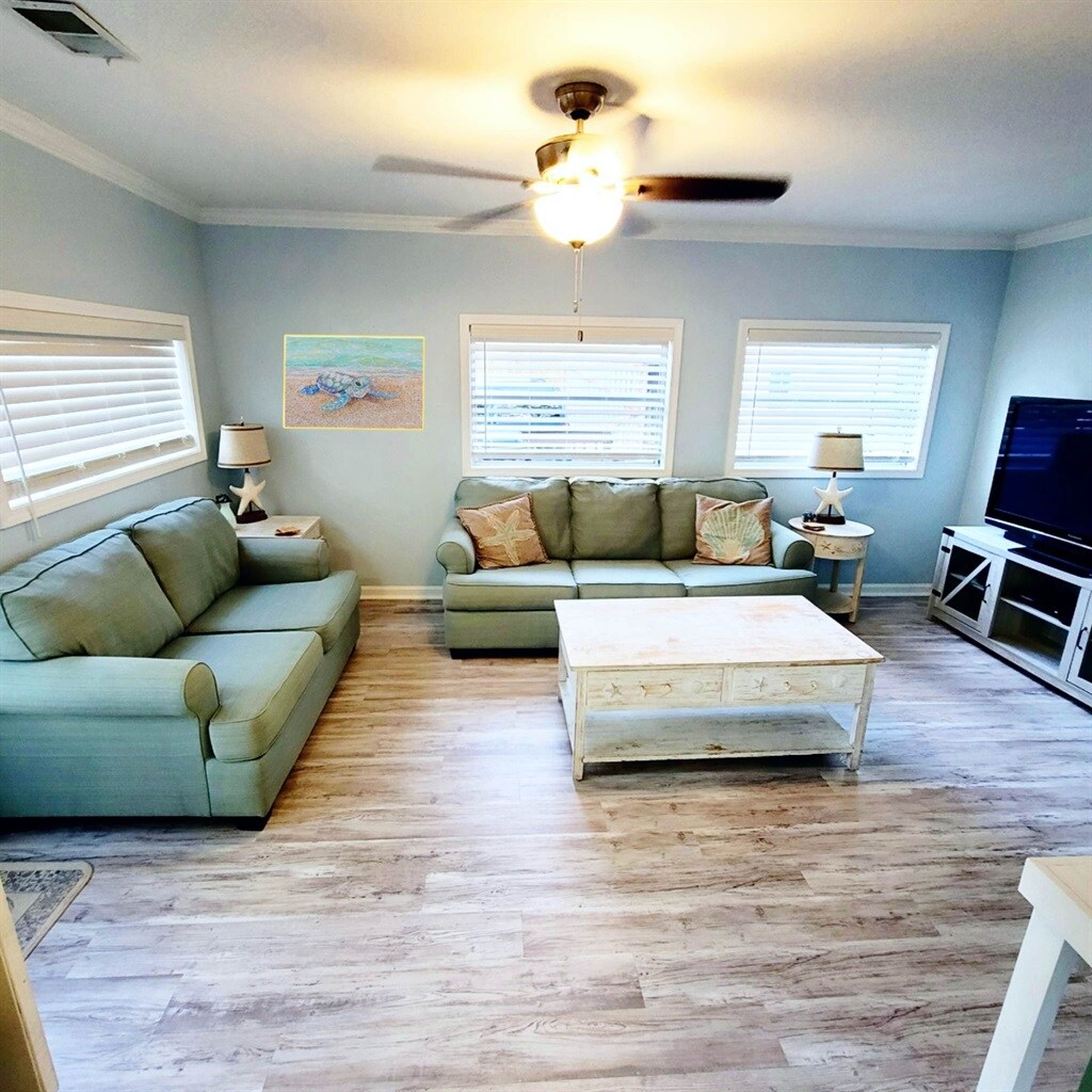 Добро пожаловать в Beach Haven — ваш тихий уголок в центре семейного кемпинга Ocean Lakes, где идеально сочетаются отдых, семейные развлечения и прибрежное очарование! Этот дом расположен на тихой тупиковой улице Крейн Драйв, где нет машин и шума, что идеально подходит для семейного отдыха. Проведите дни, играя в корнхол прямо у входа, наблюдая, как дети безопасно катаются на велосипедах, или просто наслаждаясь непринужденной атмосферой кемпинга.