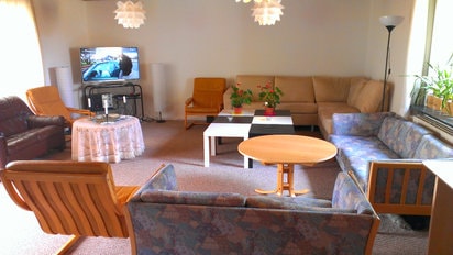 Красивая комната в большой вилле рядом с природой ,река, озеро, лес, с 5 комнатами и 70 M меблированной гостиной с телевизором, бесплатный доступ к Internt, Netflix.There также доступ к современной кухне, заполненной всеми видами коммунальных услуг, 3 ванные комнаты консерватории.. У нас также низкая стоимость микроавтобус Трансфер,,, в любом месте в любое время,,