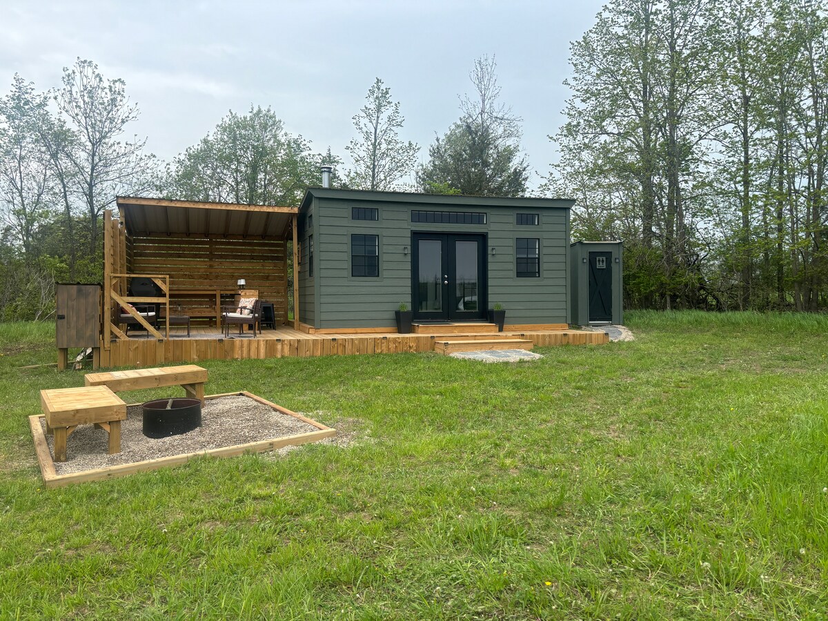 На вершине хребта Шугар-Мейплс находится хижина площадью 400 кв. футов, расположенная на прекрасном участке Канадского щита. Домик имеет открытую планировку и хорошо оборудован: есть очень удобная двуспальная кровать размера Queen size, дровяная печь и кухня, дополнительное спальное место на диване-кровати. Это глэмпинг в лучшем виде! Хижина расположена в задней части нашего 20 акров с тропами и дикой природой. ***Обратите внимание, что вам придется пройти около 200 метров от коттеджа до коттеджа.