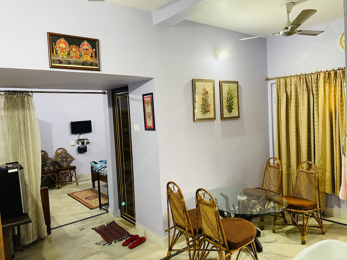 Почувствуйте покой, роскошь и семейный комфорт в нашей квартире, расположенной в центре города недалеко от пляжа Пури-Одиша. Яркие цвета квартиры красивее, чем любой гостиничный номер в Пури. Почувствуйте спокойную атмосферу, современные удобства и легкий доступ к местным достопримечательностям. Идеально подходит для расслабляющего отдыха, всего в нескольких шагах от пляжа и оживленной городской жизни. Это совершенно новая квартира, расположенная недалеко от пляжной зоны. Золотой пляж находится в 800 метрах. Расстояние до храма Шри Джаганнатха составляет 2 км.