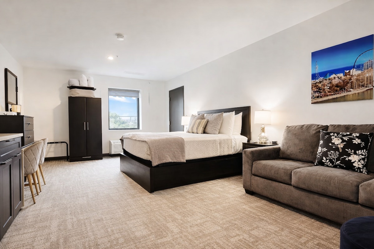 Остановитесь в центре деревни в этом уникальном жилье. Этот люкс премиум-класса с кроватью размера Queen size имеет отдельный вход, парковочное место, роскошное постельное белье и отделку, включая постельное белье Restoration Hardware, матрас премиум-класса и египетские хлопковые полотенца, а также шикарные туалетные принадлежности. Когда-то это банк, теперь это многофункциональная концепция, в которой есть коктейль-бар для подпольных баров, профессиональные офисные помещения, кафе с патио и патио, где подают кулинарную американскую классику и два бутик-отеля.