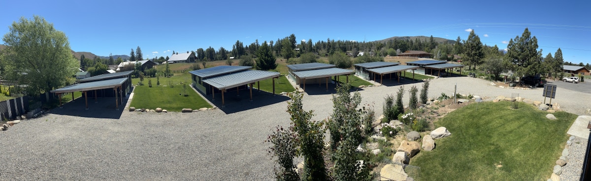 Base Camp 49 — это специально построенный микрокурорт из четырех домов с двумя спальнями, каждый из которых вмещает до 6 гостей. Жилье расположено на лыжных трассах в центре Мазамы и на берегу реки Метоу. Во всех домиках есть крытые патио, мангалы и потрясающие виды. Каждая вилла Casita со вкусом обставлена современным декором, что делает ее идеальным местом для отдыха и создания воспоминаний. Отдельные блоки названы в честь близлежащих гор: Гоат-Пик, Сэнди-Бьютт, Флагг-Маунтин и Лаки-Джим-Блафф.