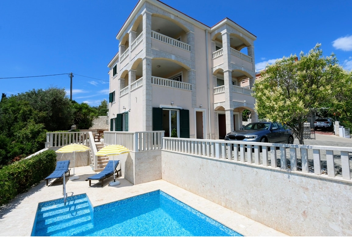 Современная квартира с видом на бассейн и море и отличное расположение в округе Горни, Чиово. Всего в 2 минутах от главного пляжа и супермаркета, в 5 минутах езды на машине или в 10 минутах на пароме от охраняемого ЮНЕСКО города Трогир. Приятного отдыха.
