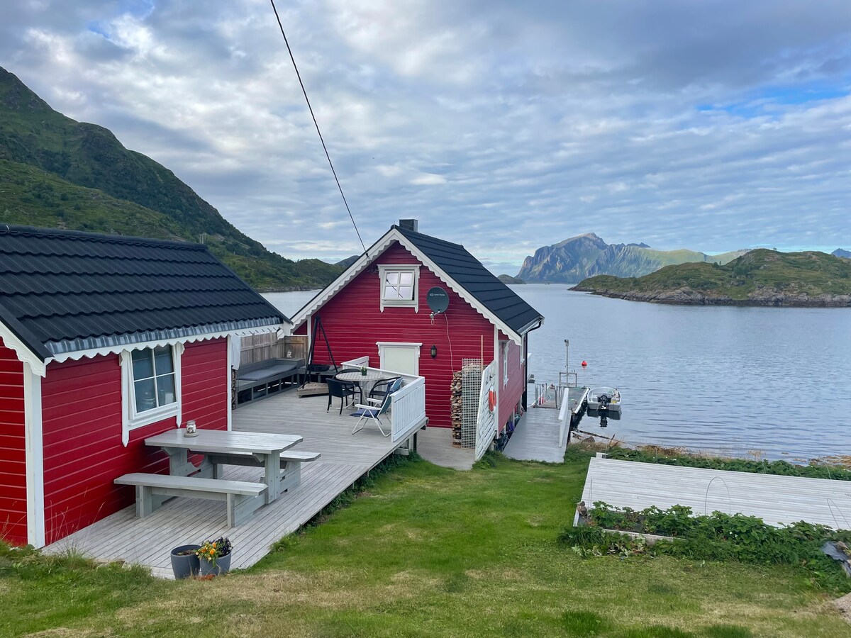 Добро пожаловать в наш домик в Smines в Вестеролене! Всего в 25 минутах езды от Сортланда и в 15 минутах езды от ближайшего продуктового магазина в Эйдфьорде. Идиллический уютный домик на берегу моря с собственным плавучим доком и гребной лодкой. Все рыболовные снасти и спасательные жилеты находятся на территории! Лодка не будет доступна с октября по апрель! Наслаждайтесь красивой природой Вестеролена, где можно отправиться в поход, и танцующим северным сиянием осенью/зимой. Также наблюдали стаю свиней в море 🐬
