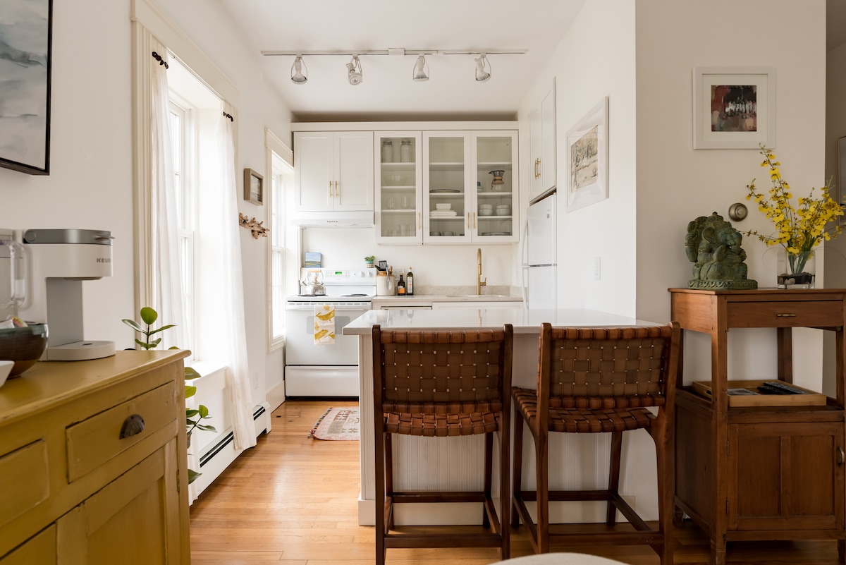 Светлая и просторная квартира с одной спальней в Ист-Энде Портленда, штат Мэн. Жилье расположено на вершине холма Манджой, одинаково между проспектом Вашингтона (ресторанами и пивоварнями) и океаном. Жилье расположено в тихом районе, но при этом близко ко всему. Кофе, выпечка и рестораны находятся в 2 кварталах. Прогуляйтесь по набережной с видом на залив Каско и острова. Пройдите мимо пляжа Ист-Энд вдоль моря до Старого порта за 15 минут. По нашему мнению, Манджой-Хилл - лучшее место для проживания в Портленде.