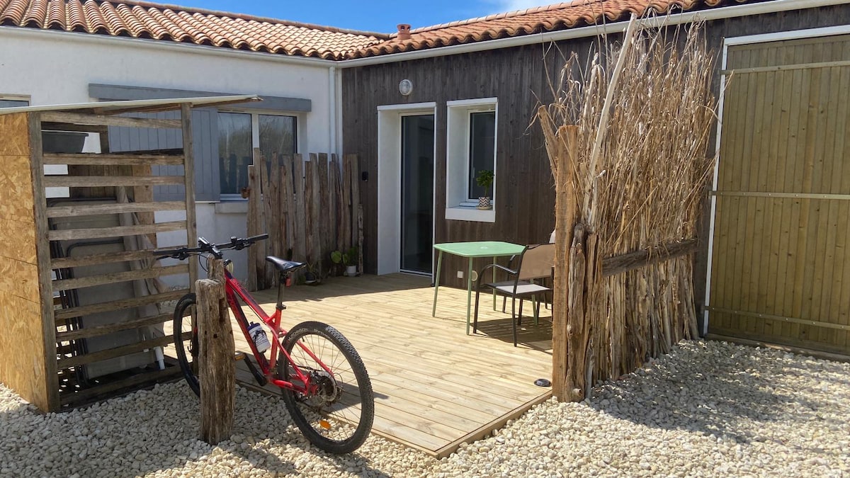 новое жилье, тихое, обращенное на юг, расположенное в типичной деревне и недалеко от велосипедной дорожки. В 10 минутах от центра замка и в 15 минутах от большого пляжа на западном побережье с его многочисленными местами для серфинга и лесом. Цитадель и хижины художников в замке Олерон с крупнейшим крытым рынком на острове по воскресеньям утром. Wi-Fi или оптоволоконный штепсельная вилка rg45. Наш домик примыкает к нашему основному жилью. Отдельный вход и прекрасный сад не упускаются из виду.