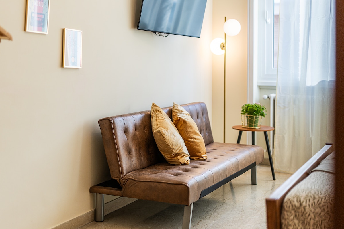 “Interno A” è un appartamento moderno dal design ricercato, studiato in ogni dettaglio per accogliere gli ospiti con cura. Alloggerete in un accogliente ed intimo monolocale appartato e molto silenzioso, situato a livello del cortile di un palazzo romano, che comprende una camera da letto con un grande letto matrimoniale, una zona giorno con tavolo da pranzo, una cucina attrezzata, un bagno privato completo di bidet, e una moderna doccia a vista ricavata in una nicchia nel muro.