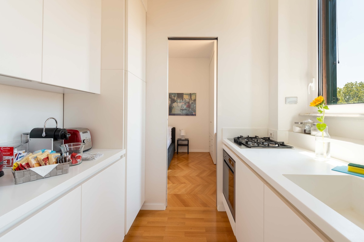 Совершенно новая квартира в величественном месте в центре города и в 50 метрах от трамвайного и автобусного терминала, что позволяет быстро добраться до всех достопримечательностей города (за несколько минут вы можете добраться до исторического центра), таких как площадь Пьяцца-дель-Пополо. Стратегическое расположение делает его идеальным решением для деловых поездок и осмотра достопримечательностей. Всего в 5 минутах ходьбы мы можем найти несколько достопримечательностей, таких как Олимпийский стадион, Италика, Auditorium Parco della Musica и MAXXI.