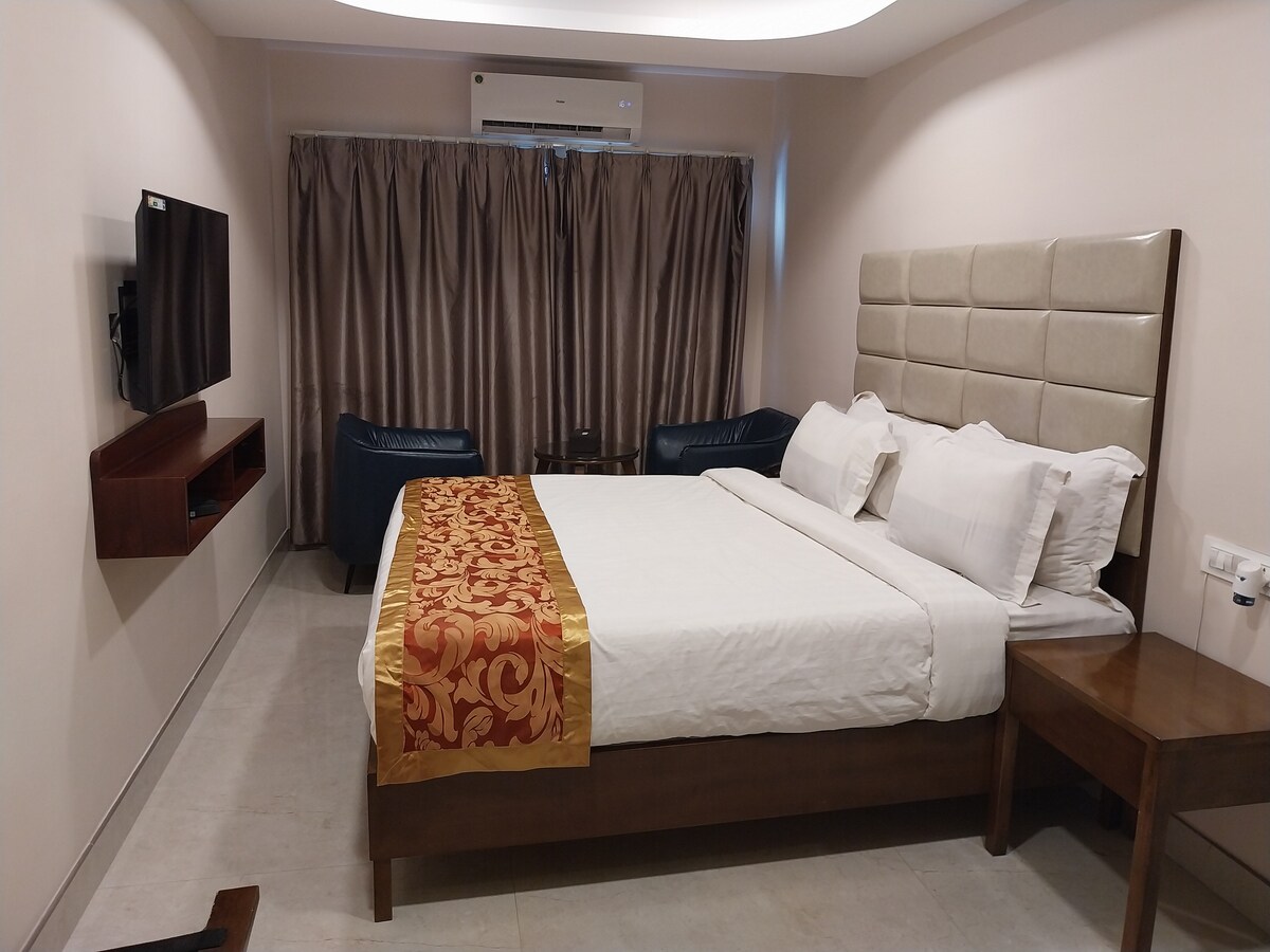 This elegant room features: - Luxurious king-size bed, perfect for a restful night's sleep and rejuvenation - Generously sized layout, offering ample space to unwind or focus on work - Spotlessly clean bathroom, maintained to pristine standards for your comfort - Wholesome complimentary breakfast each morning, crafted to energize your day