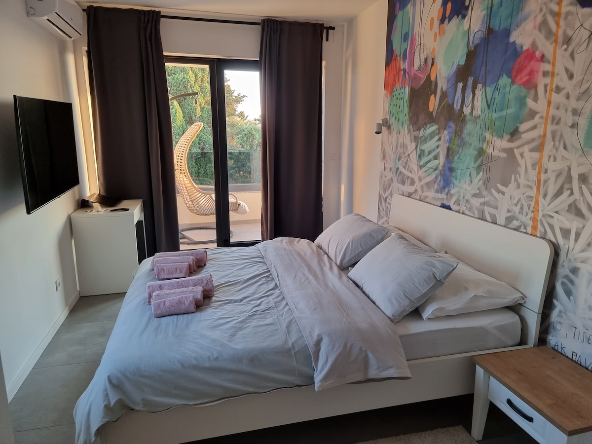 Наша квартира на первом этаже в пляжном гостевом доме Olive Grove Inn расположена в эксклюзивном пригороде Задара. В квартире есть просторная кухня с обеденной зоной, две спальни (одна с двуспальной кроватью и одна с двумя односпальными кроватями, вмещающая до четырех гостей) и собственная терраса в патио. Жилье окружено пышным средиземноморским садом, предлагающим спокойную и живописную обстановку. Удобное расположение всего в 15 минутах езды от центра Задара и всего в 20 метрах от пляжа.